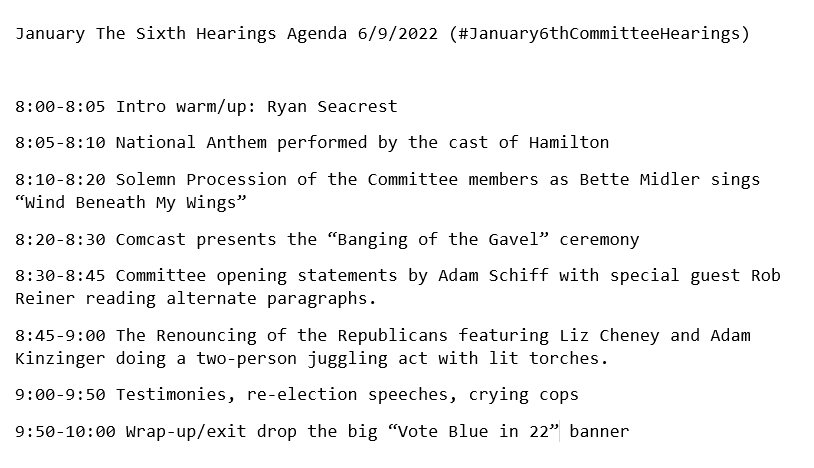 However, the real highlight of the week was the January 6 Insurrection Committee Circus. A truly made-for-tv event created to help prevent the electoral bloodbath that will hit Democrats this November. Touted by political operatives and the media (but I repeat myself), this is the Event of the Year! And 20 million people agreed!