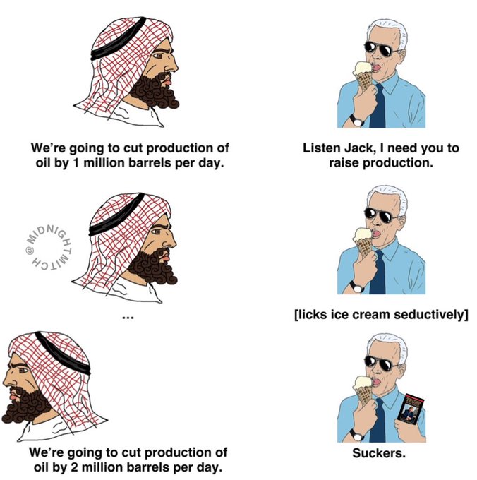 In the “why yes, we did f*** with you” category, Biden, this week, went hat-in-hand to ask Saudi Arabia and OPEC to pump up oil production. It went as well as you’d expect. Keep your hedge clippings, people, you might need it to keep warm this winter.