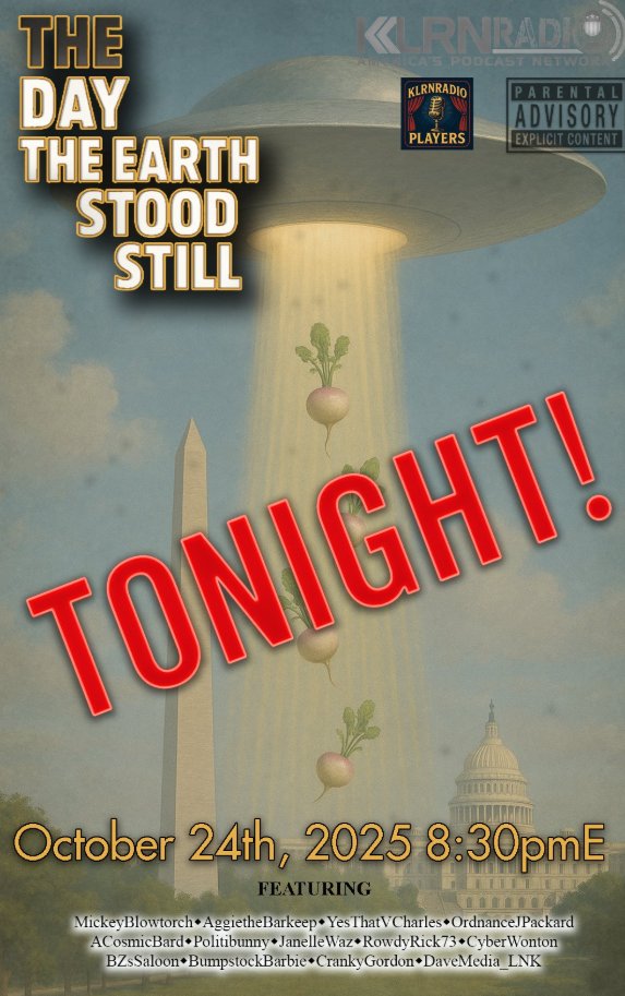 In case you missed it last night, KRLN put on one of their holiday extravaganzas – an old school radio show! This last Friday’s presentation was a delightfully twisted reading of “The Day the Earth Stood Still”. TLP favorites, The Politibunny, Ordnance J. Packard a/k/a The Opulent Amish, Dave LNK, Cyber Wonton as well as our very own J E Double F, Rick Robinson and many others loaned their talents to the show.