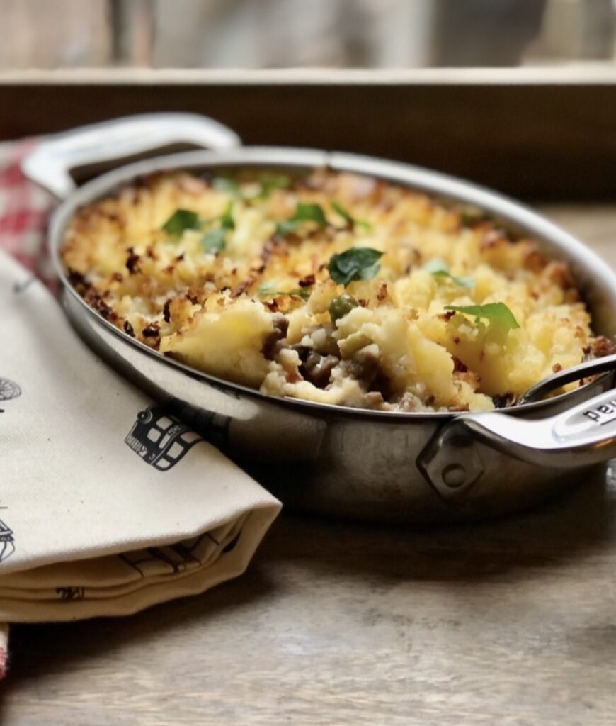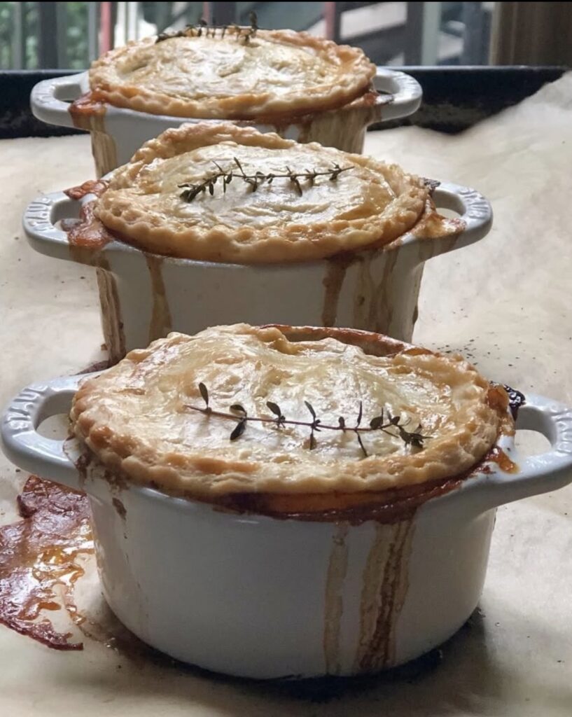 One recipe made 2 ways, a hearty stick to the ribs pot pie or cottage pie made with a beef filling is a delicious meal that’s easy to make. I like to use pre made puff pastry (Dufour is my favorite but pepperidge farm also makes puff pastry) if making a cottage pie it has the same filling but is topped with mashed potatoes instead of puff pastry. You choose, either way you can’t go wrong, here’s how to make it: